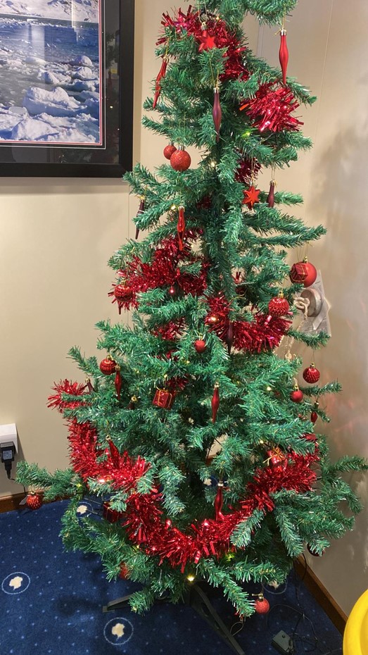 Christmas came early to Halley Research Station this year due to poor weather and operational demands. The team made the most of it by decorating the station and making homemade secret santa gifts for colleagues in their time off, with the chefs preparing a special festive meal.