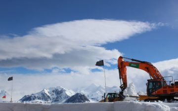 A team from BAM has started to clear several hundred thousand tonnes of snow accumulated over the Antarctic Winter from all access routes and construction areas on station. Snow drifts are 4m high in some areas of station. The remaining construction team arrives later this month following a three and a half week journey onboard the RRS Sir David Attenborough.