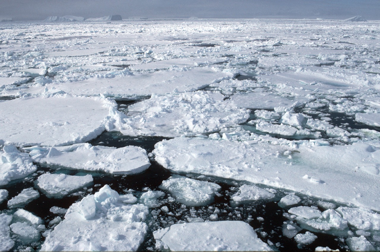 Beyond the ice shelves is the sea. When the sea freezes it forms a salty type of ice, sea ice. The area covered by sea ice varies with the seasons, around 3 million km² in February, around 20 million km² in October. So much of the sea freezes around the continent that in winter, Antarctica almost doubles in size.