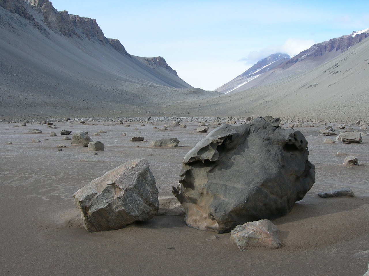 Dry valleys in Antarctica are areas of extensive and exceptional rock exposure. Thanks to local or regional weather patterns, even glaciers fail to invade the rocky landscapes. They are also known as Antarctic ‘oases’ and are best developed in the McMurdo area of East Antarctica. Unlike the fertile oases of hot deserts these represent some of the coldest and driest places on our planet.