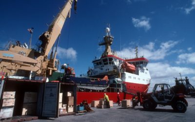 We arrived off Halley mid-morning and were greeted by a well laid out and prepared ramp and berthing area. We made our way in through some first year ice which was still clinging to the older more substantial stuff against the shelf. Last year’s mooring posts were still in place and we duly tied up alongside.