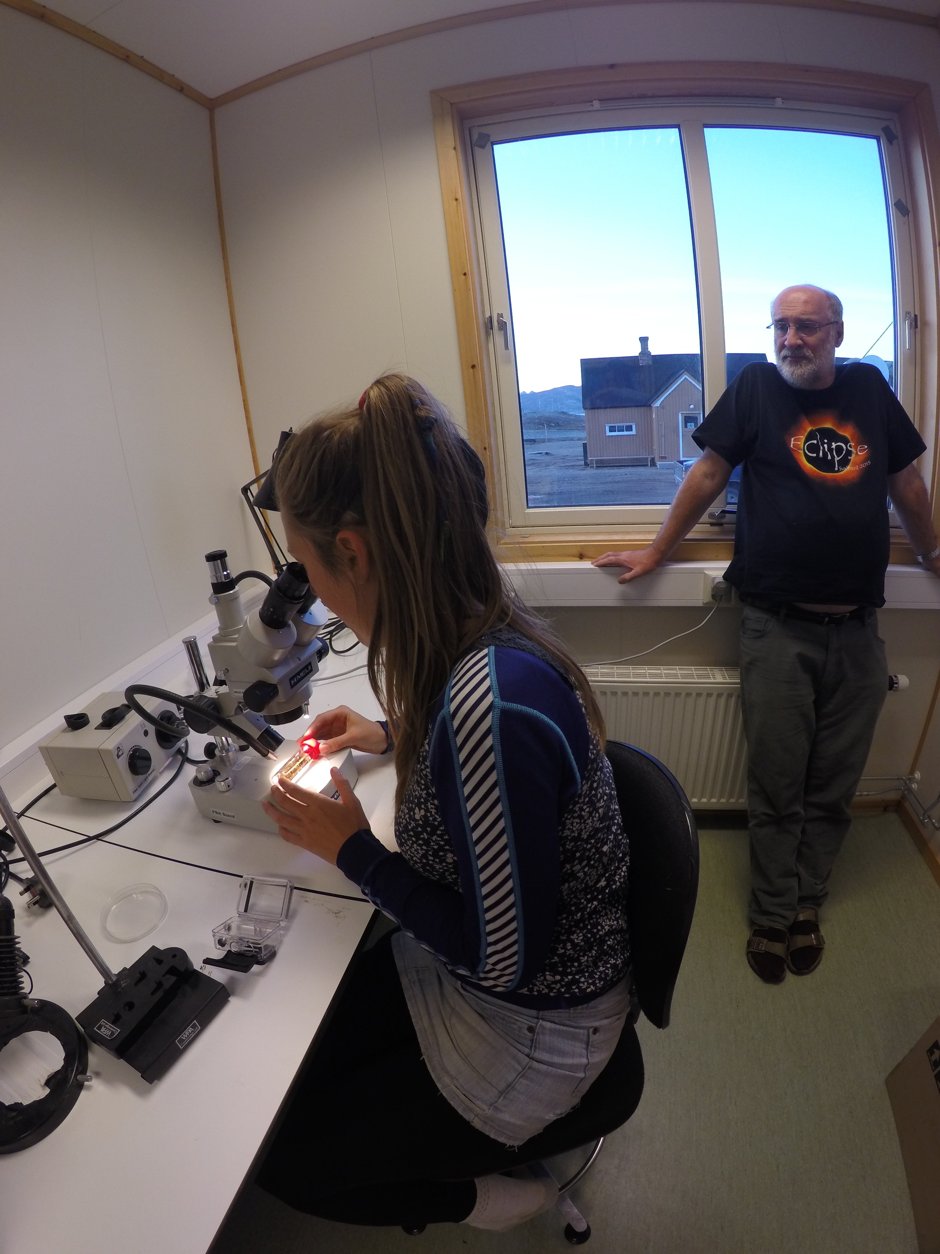 Full day number two saw us plan and carry some biological sampling with BAS’s expert ecologist Professor Pete Convey. Pete talked us through different habitats as we walked nearly 20km through moraines and across tundra; at each important vegetated site we collected samples. Back at the station we extracted all the live insects and beasties and identified them using microscopes.