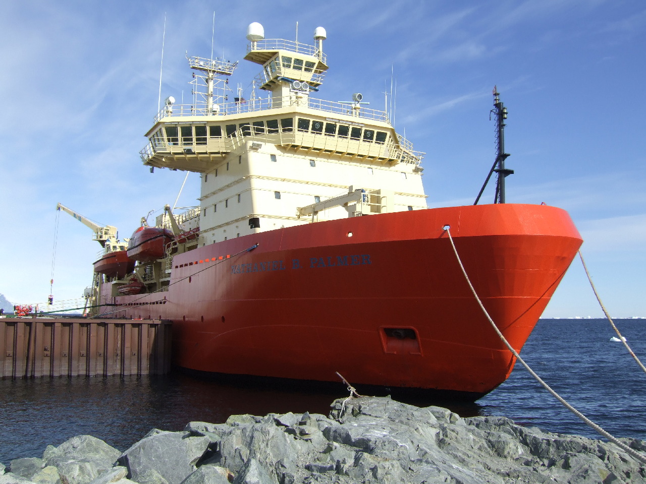 It was a cloudy, drizzling day when the Shackleton crews changed over, but it was all blue and sunny skies for those heading homeward for their leave after 4 long months of service onboard. The oncoming crew had time to absorb their handover notes, unpack their baggage and cases and then go down to the ‘cages’ ( the ship’s storage) to retrieve their cold weather and wet weather work attire. Here’s a picture of the Shackleton alongside at FIPASS.