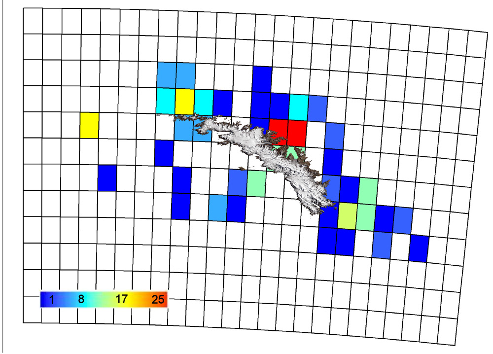 Map showing distribution of Bryozoans in South Georgia – data from South Georgia Marine Biodiversity Database (SGMarBase)