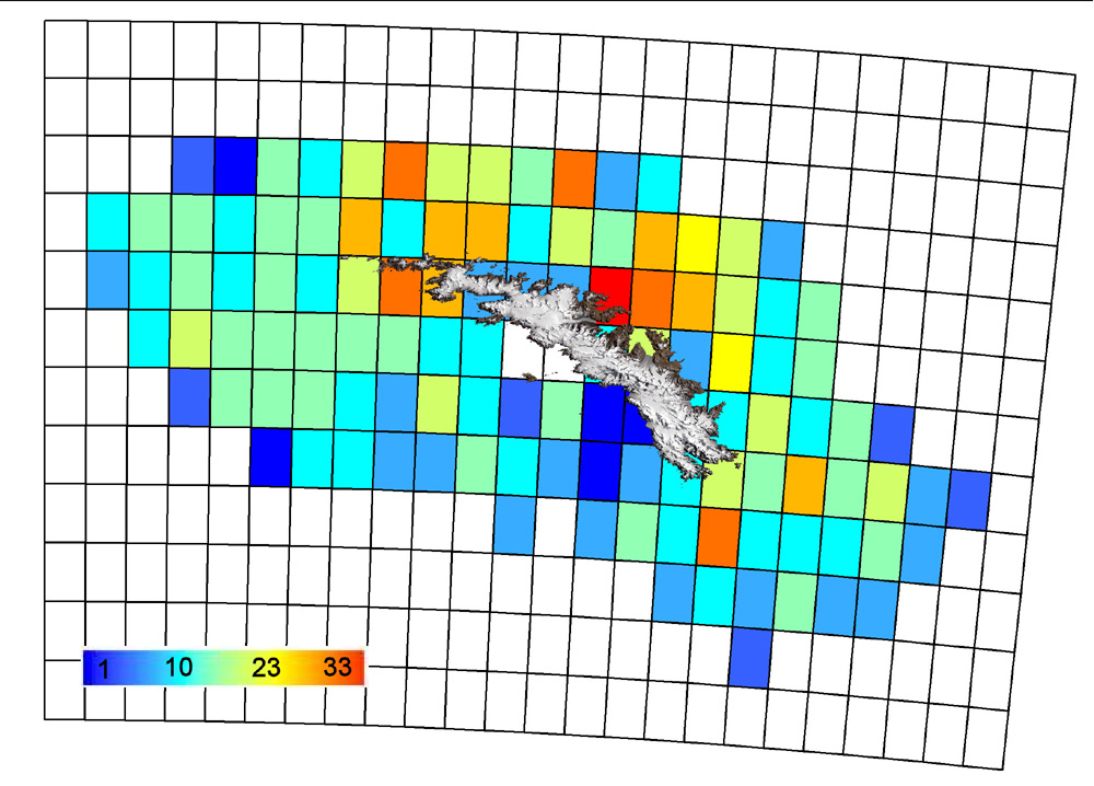 Map showing distribution of Chordates in South Georgia – data from South Georgia Marine Biodiversity Database (SGMarBase)