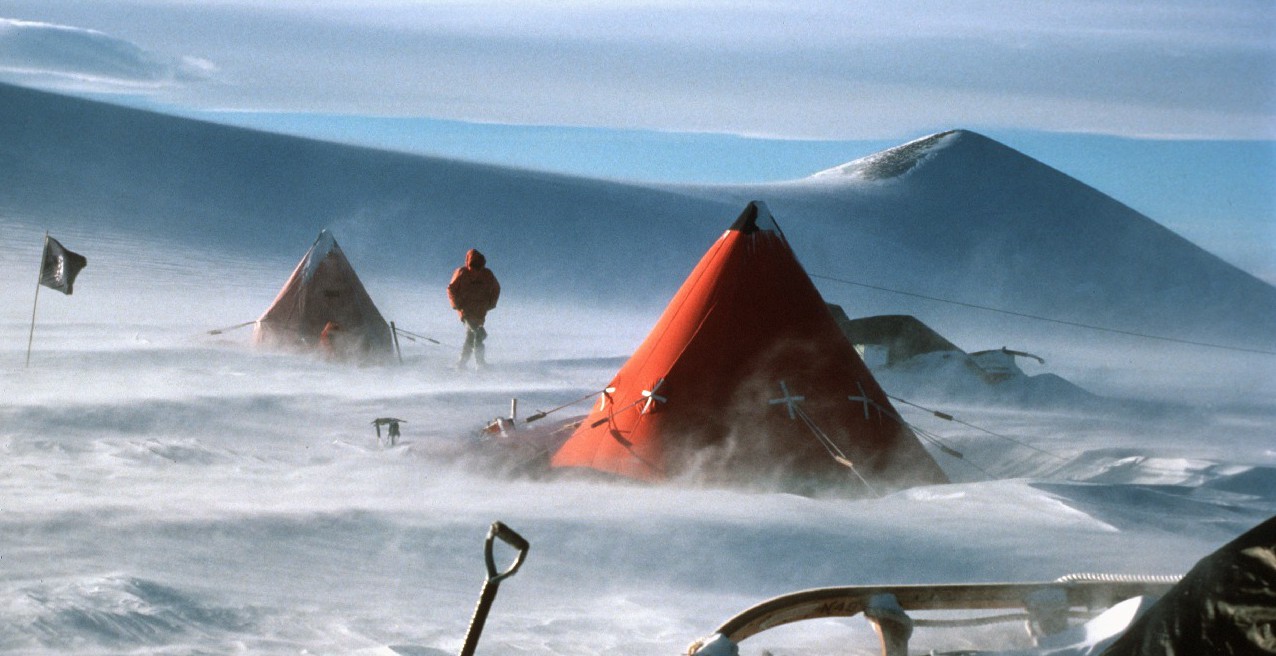 Weather High winds making life difficult at a field camp. No work today! These winds are around 30 knots, often 60 knots are encountered but few photographs are taken then! Rough seas of the Southern ocean Rainbow seen on a stormy day at sea