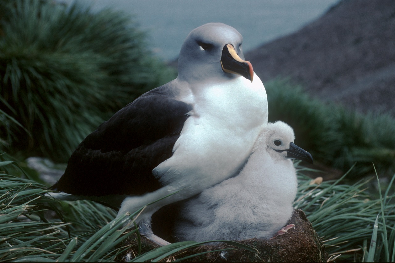 Pair of Grey-headed Albatrosses (Thalassarche chrysostoma) in colony A, Bird Island