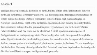 Potential dispersal of tardigrades by birds through endozoochory: evidence from Sub-Antarctic White-bellied Seedsnipe (Attagis malouinus)