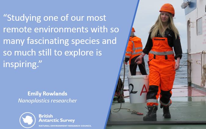 Emily studies nanoplastics in the Southern Ocean marine ecosystem with British Antarctic Survey and University of Exeter