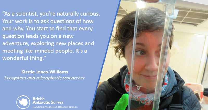 Kirstie Jones-Williams, studies the impact of microplastics on polar marine zooplankton with BAS and University of Exeter.