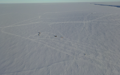 The Brunt Ice Shelf is the home of the British Antarctic Survey’s Halley VI Research Station. Since 2021, three large icebergs have calved off this shelf, with the largest being the size of Greater London. Researchers have been studying the ice shelf in great detail to try to understand the processes that occur before a big calving happens.