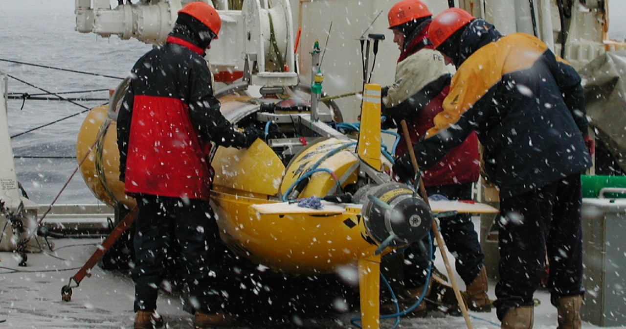 The team deployed the robot explorer, Autosub3, from the US Research Vessel Nathaniel B. Palmer, to investigate the underside of the ice and measure changes in salinity and temperature of the surrounding water.