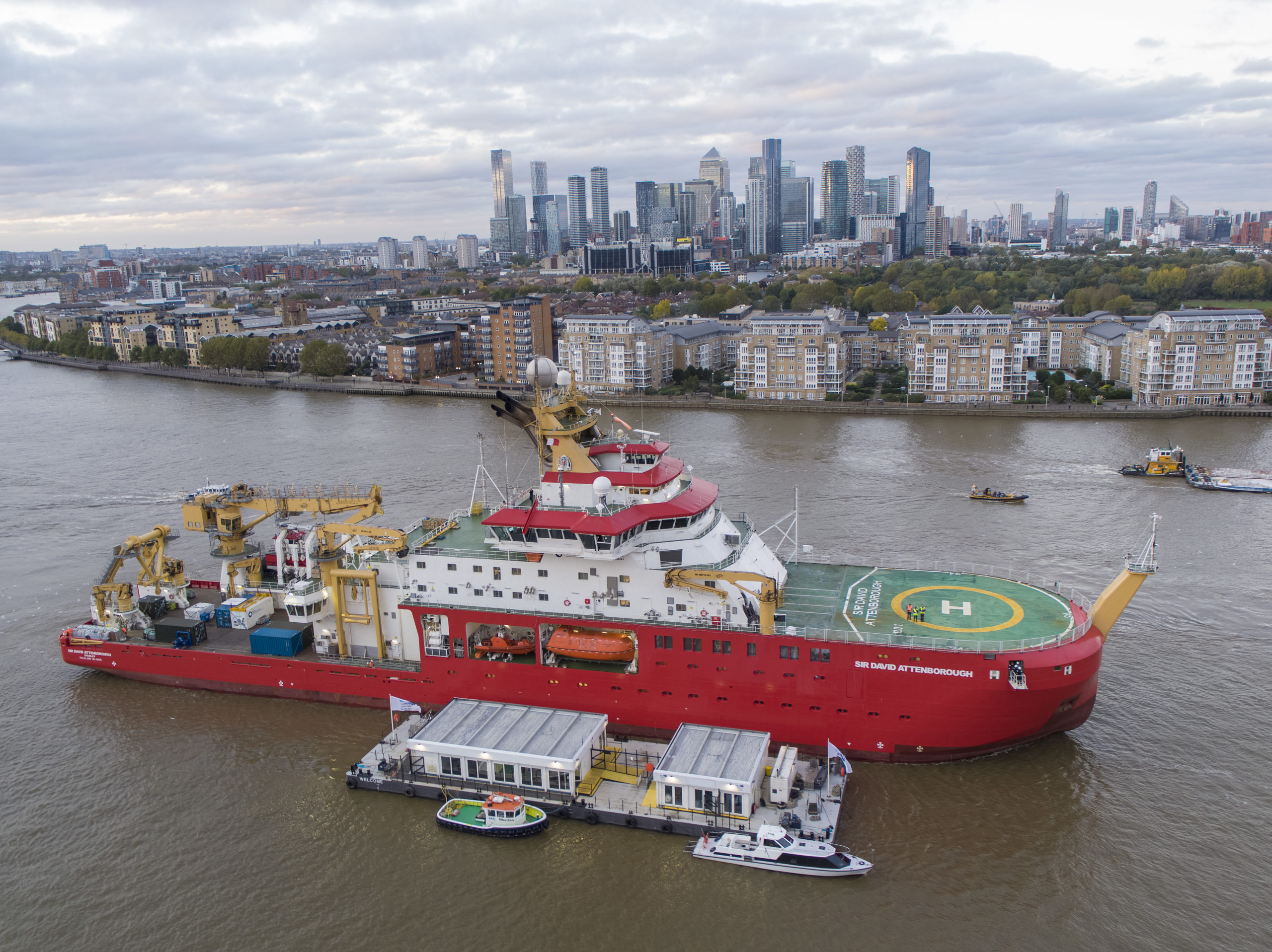 RRS Sir David Attenborough visited Greenwich, London to celebrate the UK Presidency of COP26 in October 2021. Credit: BAS