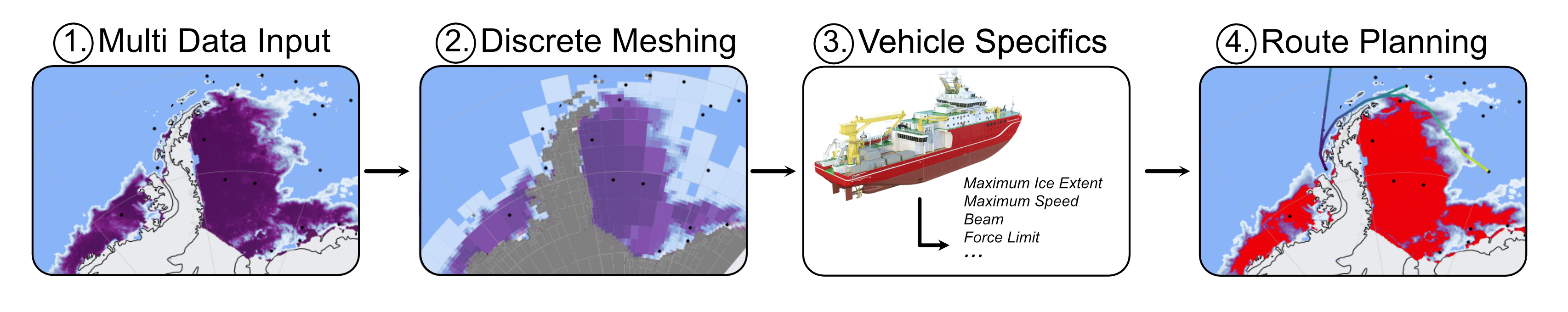 Where these different areas of digital development come together, we can unlock huge progress. For example, successful work from the BAS AI team on accurately predicting sea ice extent is now being developed into a new AI route-planning tool for ships navigating ice-covered polar seas. PolarRoute makes use of a wide variety of existing environmental datasets and forecasts to develop a navigational route planner that updates as conditions change, similar to an in-car navigation system. This will be used by the Master of the UK’s polar research ship, RRS Sir David Attenborough, to compare and evaluate possible routes between destinations in terms of their fuel and carbon costs. This capability could also be deployed for future route planning of marine autonomous vehicles.