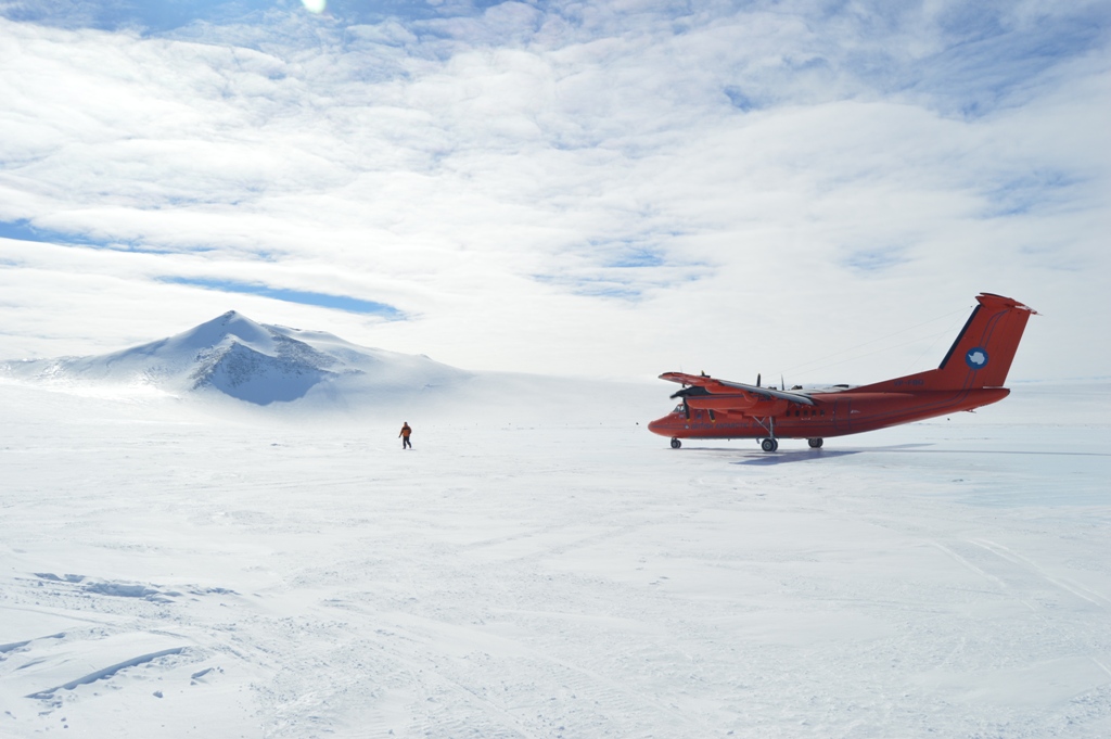 Because the Dash-7 can land on ice runways, it is a regular visitor to the field station at Sky-Blu. Thanks to its greater capacity over the Twin Otters, the Dash-7 has significantly reduced the number of flights required to ferry fuel and supplies.