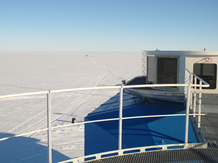 The CASLab sits approximately 30 metres above sea level on the floating Brunt Ice shelf in the Atlantic sector of coastal Antarctica.