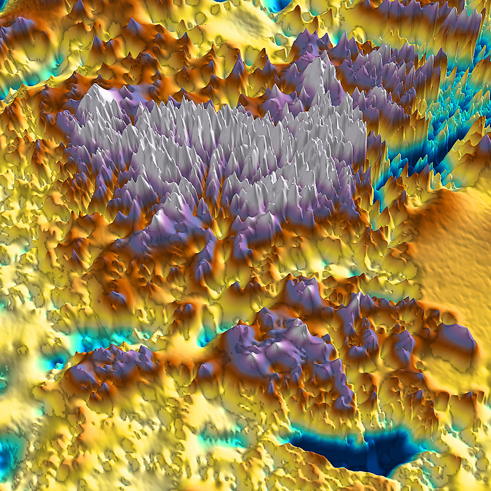 A perspective view of the Gamburtsev Subglacial Mountains, imaged using airborne ice-penetrating radar to look through the overlying ice sheet.