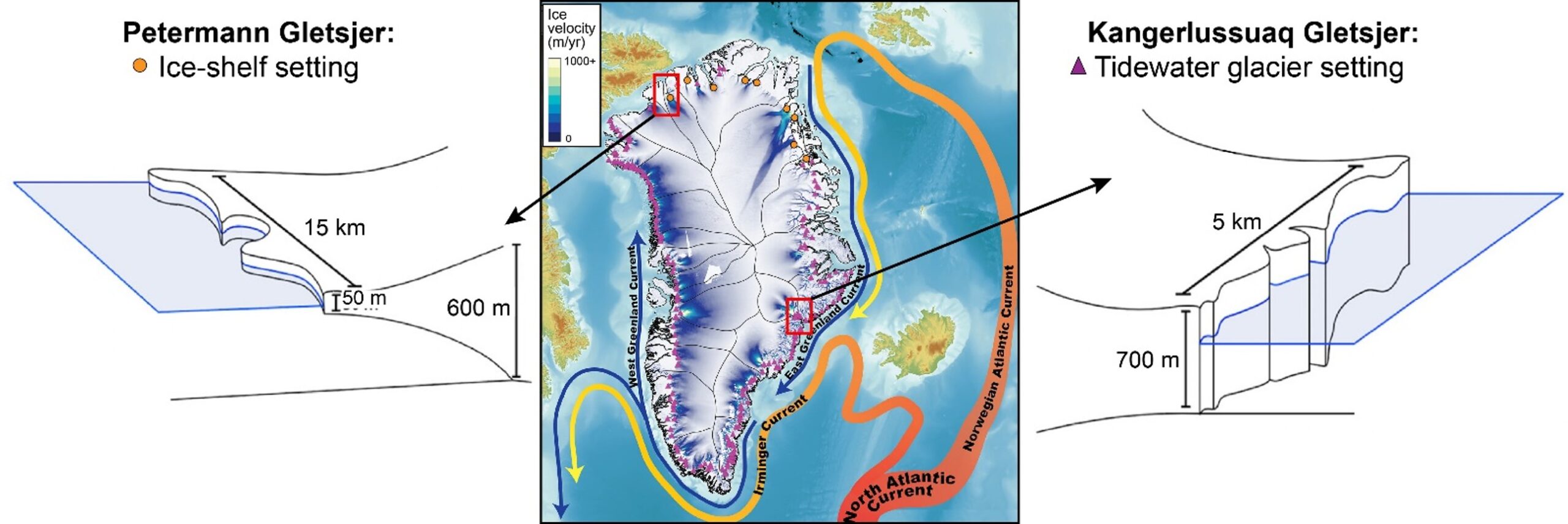 The Petermann and Kangerlussuaq glaciers were identified as prime targets in a community paper on Greenland fjord/glacier observation, which this image is taken from (Straneo et al., 2019).