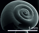 Juvenile Limacina helicina collected beneath sea ice in the Greenland Sea in 2012 exhibiting localized damage (dissolution) of the shell.