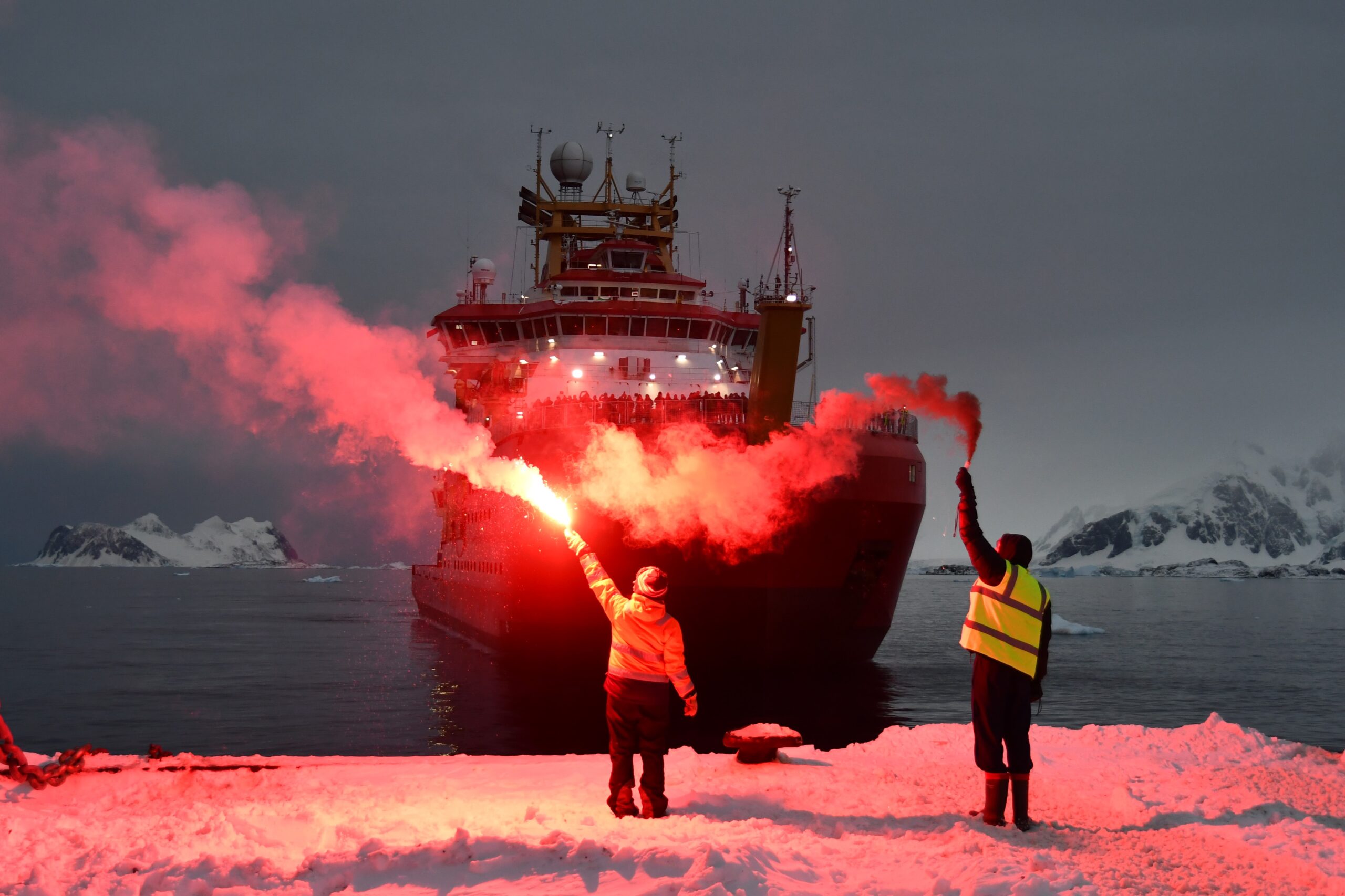 Katie Handford, Assistant Project Manager recalls, “Seeing the ship leave was definitely a scary yet iconic moment, filled with apprehension and excitement about what was to come”. A few of the wintering team let off the traditional flares whilst they waved goodbye to the summer team returning home on the polar research ship, RRS Sir David Attenborough.