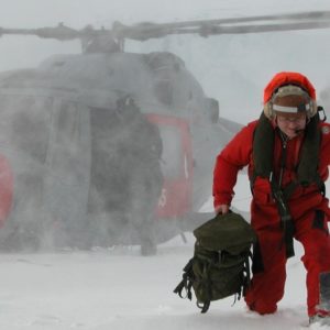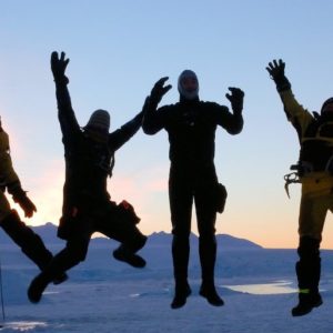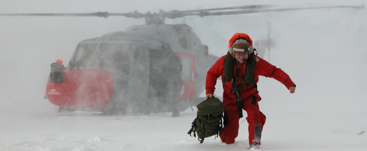 British Antarctic Survey field assistant Rob Smith enters a crevasse alongside Reptile Ridge on Adelaide Island, Antarctica